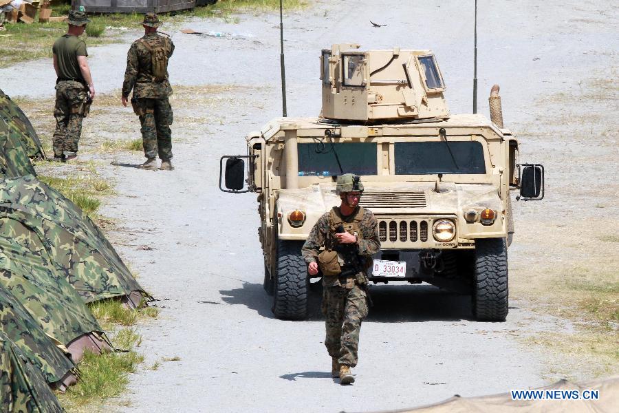 美菲兩棲聯合軍演第二天,當天來自美國兩極攻擊艦“好人理查德”號上的約120名美國海軍陸戰隊員和約30名菲律賓海軍陸戰隊員來到了菲律賓塔拉省的烏鴉峽谷,參加直升機突襲項目的演習。