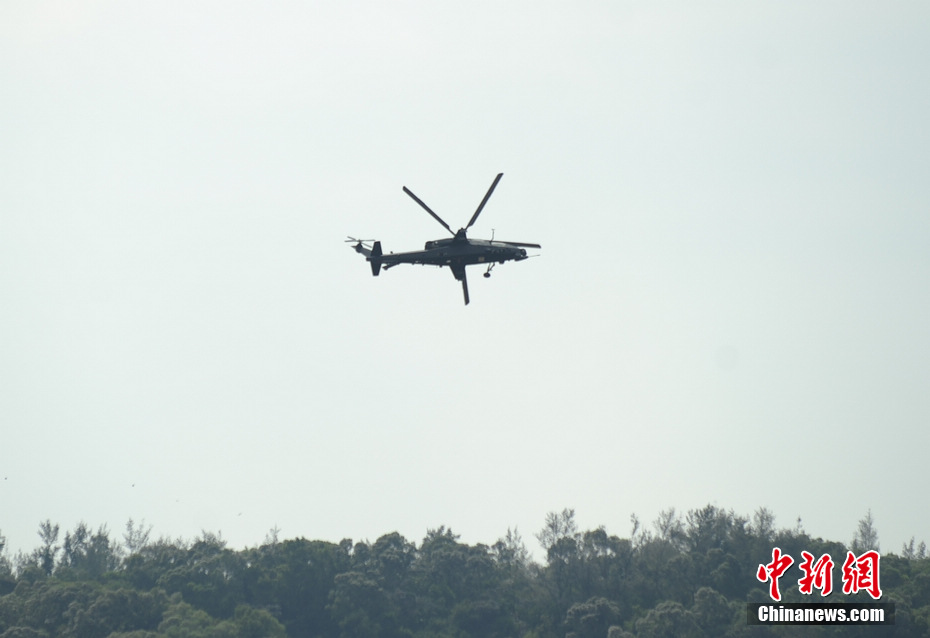 中新網(wǎng)珠海11月11日電(陳海峰) 11日上午,中國武直10武裝直升機首次在珠海上空公開亮相,并進行了適應性飛行訓練,其做出倒飛、低空盤旋、萊維斯曼翻轉等多個精彩動作,在短暫現(xiàn)身后離開航展上空。