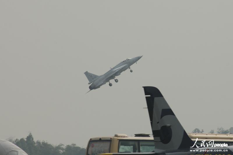 梟龍戰機起飛進行飛行表演。人民網記者 閆嘉琪 攝