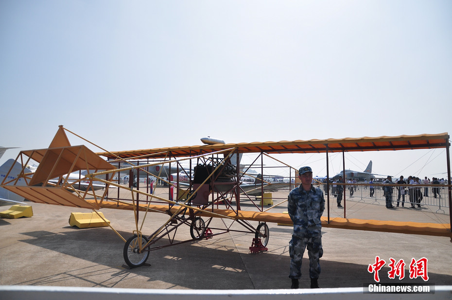 馮如2號飛機是中國人自行設計、制造并成功試飛的第一架飛機。該機于1911年1月18日由“中國航空之父”--馮如試飛成功。航展上展出的為1:1復制品。陳海峰 攝