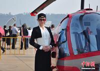 每一屆珠海航展都會有許多佳麗現身,而這次航展上的直升機模特更是讓觀眾大飽眼福。陳海峰 攝