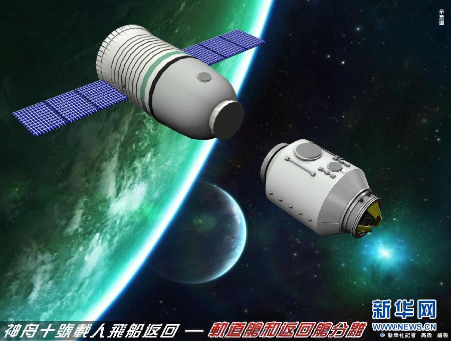 神舟十號載人飛船返回——軌道艙和返回艙分離 新華社記者 高微 編制