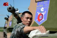 “和平使命-2013”中俄聯(lián)合反恐軍事演習7月27日開始,參演部隊士氣高昂整裝待發(fā)。特約記者蓋旭輝攝(來源:中國軍網(wǎng))