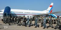 圖為中方導演部及指揮部人員乘專機全部出境,抵俄參演。中國軍網記者李靖攝
