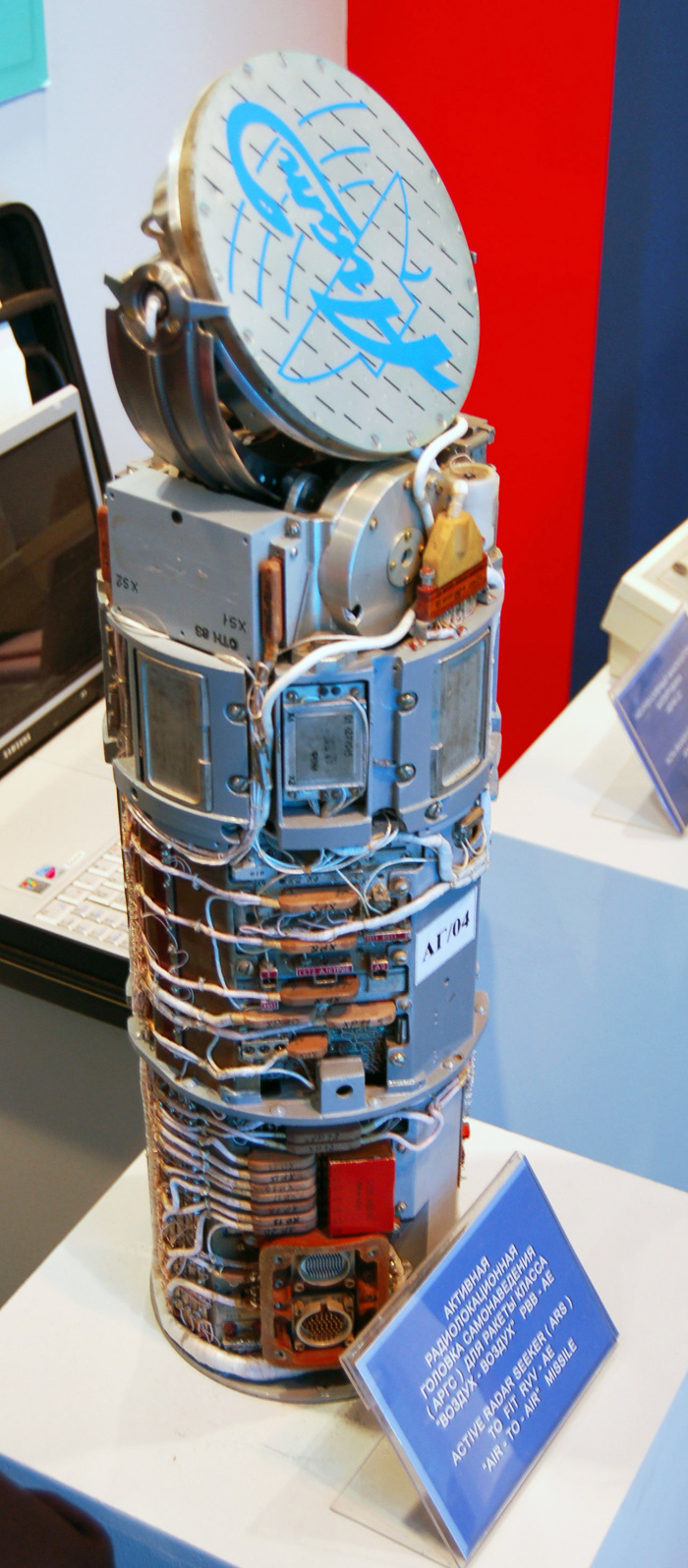據俄羅斯媒體稱,上世紀80年代研制而成的R-77中程主動雷達制導導彈能夠實現發射后不管,最初同樣由烏克蘭“阿爾焦姆”公司生產,但在蘇聯解體后停產。90年代中期俄羅斯“信號旗”設計局自行組織批量生產出口型R-77導彈,代號RVV-AE,使用改進型自導彈頭。隨后RVV-AE導彈成為所有蘇-27和米格-29系列新型和改型戰機不可分割的一部分,成為戰術導彈武器集團的出口拳頭產品,創造了豐厚的外匯收入,其中僅向中國就供應了大約1500枚,向印度供應了至少800枚,現在還在繼續供應。另外還在向其他一些國家出口。(圖為R-77的導引頭,它也是PL-12的技術來源之一)