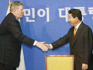 圖:盧武鉉與凱利就朝核問題交換意見