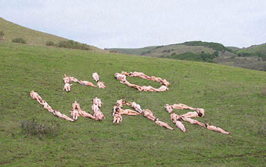 這些為和平呼吁的婦女已經擺過七次造型,供媒體進行拍攝。她們曾經在一處海灘用裸體拼寫過“和平”一詞;還有一次她們在加利福尼亞州的一處農場的山坡上拼寫“不要戰爭”的口號。