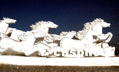 日前,兩座高7米,長20余米的大型雪雕奔馬圖在長春市世紀廣場落成。該奔馬圖由六匹英俊的奔馬組成,預示著順利送走馬年迎來羊年,為此吸引了眾多國內外游客的視線。樊甲山 攝