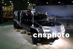 最近,一批用尖端科技裝備武裝起來的美國軍用車輛揭開神秘面紗,亮相底特律北美國際車展。圖為第二代智能卡車,這款6輪驅動的軍用卡車配備有自動導航和自動駕駛系統、全球衛星定位系統、360度自由旋轉攝像機、激光制導輕型導彈等先進的儀器和武器裝備,可隨時隨地、快捷地執行指揮部的命令。Ic/cnsphoto 攝