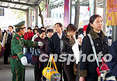 今年“春運”于本月十七日啟動。連日來,福州火車站客流大增,福州武警戰士在車站維持秩序。作者:鄭祚聲