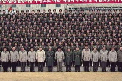 金正日與朝鮮人民軍860空軍部隊(duì)官兵合影留念