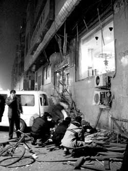 爆炸發(fā)生后,記者立刻趕到現(xiàn)場。儲蓄所門前,很多群眾在圍觀。車號為遼AR—0787的運(yùn)鈔車車身被炸受損,車體兩旁各有一具尸體,銀行窗下還有一具血肉模糊的尸體。該銀行的窗戶都已被炸碎,墻上的空調(diào)被炸得變形,路邊的垃圾桶也被炸扁。許多警察在案發(fā)現(xiàn)場維持秩序,晚6時20分左右,案發(fā)現(xiàn)場被封鎖。