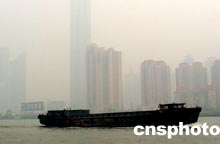 1月20日,今年首場(chǎng)大霧緊裹蘇浙滬等省市。上海郊區(qū)的能見(jiàn)度普遍不足100米。圖為黃浦江上一片朦朧。李江松 攝