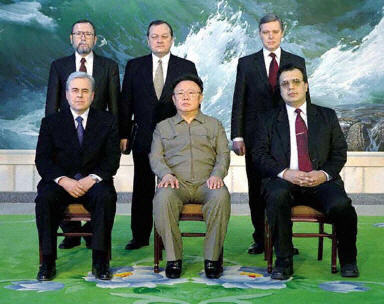 金正日(圖前排中)與俄羅斯特使、副外長(zhǎng)洛休科夫(圖前排左1)一行合影留念。
