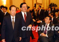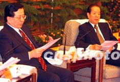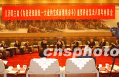 北京各界人士一月二十四日在人民大會堂出席江澤民主席《為促進祖國統一大業的完成而繼續奮斗》的重要講話發表八周年座談會。作者:賈國榮