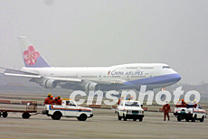 中新網上海1月26日電(記者 于俊)今天上午8:52,臺灣“華航”一架波音747——400客機順利降落在上海浦東國際機場。