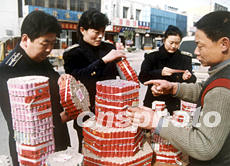 山東省棗莊市質(zhì)量技術(shù)監(jiān)督局執(zhí)法人員,春節(jié)前夕對(duì)轄區(qū)售賣煙花爆竹的攤點(diǎn)進(jìn)行檢查,一些無(wú)日期、無(wú)用藥量的偽劣產(chǎn)品受到查封。作者:李 韓