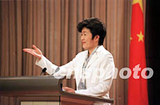 一月二十八日,中國外交部發言人章啟月在新聞發布會上 中新社記者 張煒 攝