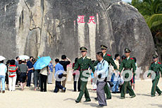 武警戰士春節期間在海南天涯海角風景區加強巡邏,以確保游客安全。根據旅游部門公布的數據,春節期間,海南三亞與黑龍江哈爾濱游客大量增加,再度成為冬季旅游的兩個熱點。作者:毛建軍