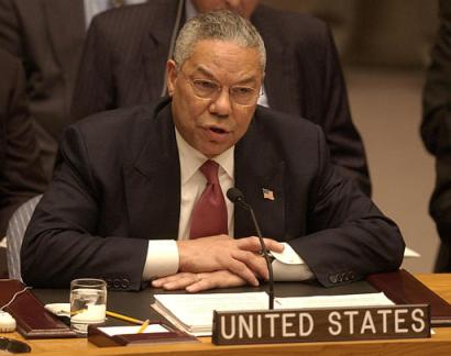 鮑威爾在會上播放了截獲的錄音電話,展示了衛星圖象,以向世界證明需要對伊拉克采取行動。