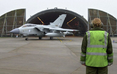 10日,英國皇家空軍“旋風”式GR4型戰斗攻擊機從位于諾福克,瑪哈姆的空軍基地起飛前往波斯灣地區增援。