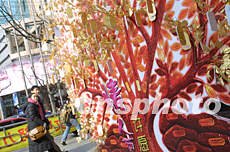 情人節將至,一棵掛滿心語心愿的“許愿樹”亮相上海街頭,祝福天下有情人相愛到永遠。作者:湯彥俊