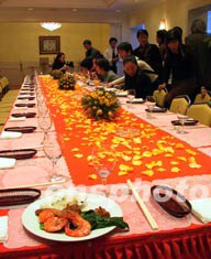 二月十四日是情人節,京城處處彌漫濃情。北京一家服裝公司用黃玫瑰花瓣制造浪漫環境。西方文化正在潛移默化影響著含蓄拘謹的中國人的傳統性格。作者:王麗南