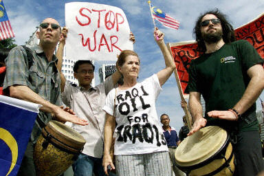 在泰國,5000多名泰國各界民眾在曼谷舉行聲勢浩大的反戰示威,強烈反對美國企圖對伊拉克發動戰爭。