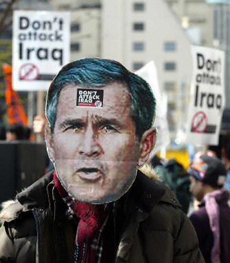 中新網2月15日電 正當戰爭的陰云密布于伊拉克上空的時候,世界各國的反戰者紛紛走上街頭,高呼反戰口號,一致要求美國立即停止對伊拉克發動軍事打擊的計劃。