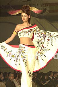 組圖:新德里時(shí)裝周 模特展示時(shí)尚露背裝 (2003-02-18 10:36:35)