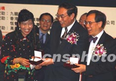 圖:王鳳超曾蔭權為香港“2002年特區政府施政十件大事”評選頒獎