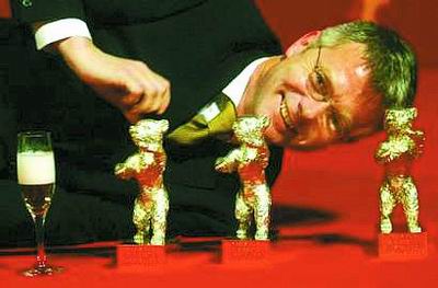 這次中國電影還是有收獲的,張藝謀捧得了“阿爾弗雷德·鮑爾(柏林電影節創辦人)大獎”。據透露,《英雄》未捧“熊”,跟本屆評委會主席伊戈揚偏愛人性題材的個人風格頗有關系。另一部由李楊編導描寫中國北方某礦區一起案件的《盲井》獲藝術貢獻銀熊獎。