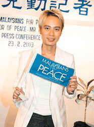 中新網2月25日電 香港歌手李克勤日前被邀往馬來西亞吉隆坡擔任當地舉行的“反戰音樂會”嘉賓,他是唯一一個來自香港的歌手,獲得當地有關部門頒發的“和平大使”錦旗,克勤笑言自己像是香港小姐得獎。