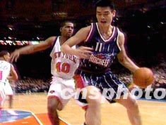 二月二十五日,休斯敦火箭隊(duì)在紐約麥迪遜花園球場挑戰(zhàn)主場作戰(zhàn)的尼克斯隊(duì)。這是效力于火箭隊(duì)的中國球員姚明本賽季首次在紐約亮相。