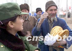 圖:解放軍保障新疆地震災民免受饑餓、寒冷