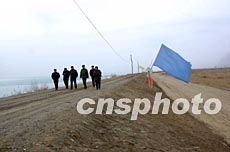 新疆地震災害造成小海子水庫調節庫大壩出現五百米裂縫,經過武警部隊和民兵六千余人的五天晝夜奮戰,加固大壩一千余米,目前水庫大壩守衛人員日夜監視,確保水庫安全。作者:宋吉河