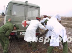 新疆地震災(zāi)區(qū)三月初連日雨雪天氣,道路泥濘,極大地影響了救援速度。圖為解放軍第十二醫(yī)院災(zāi)區(qū)醫(yī)療隊(duì)的救援車在途中被困。作者:閆文陸