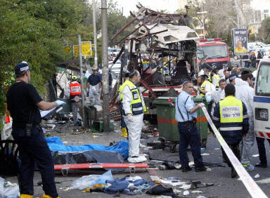 中新網(wǎng)3月6日電 以色列北部海濱城市海法5日下午發(fā)生的公共汽車(chē)自殺炸彈爆炸事件,已造成15人喪生,40余人受傷。這是兩個(gè)月來(lái)首次在以色列發(fā)生的自殺炸彈襲擊事件。