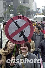 東京市民十五日在市中心的一處公園內集會,并在繁華的銀座商業街游行,反對美國準備對伊拉克發動戰爭。作者:陶光雄