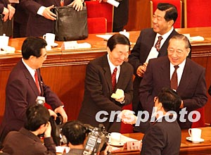 圖:王兆國向朱镕基握手致意