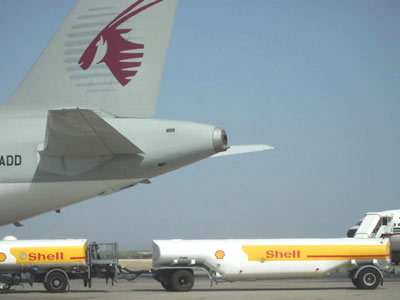西方石油公司在中東地區(qū)已經(jīng)三分市場,圖為美國石油公司為海灣航空飛機加油。(春風(fēng))