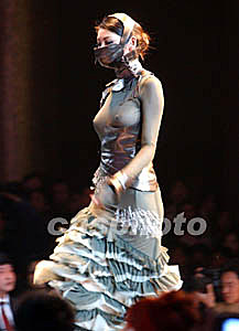 中國上海的楊智推出《鐵甲柔情》服飾系列,以皮革甲胄烘托走向戰場的女性軀體,三月二十五日在北京舉行的“漢帛杯”國際青年時裝設計師作品大賽上獲得一項最佳獎和銅獎。作者:賈國榮