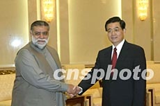 胡錦濤二十五日在北京會見巴基斯坦總理賈邁利。作者:滿會喬