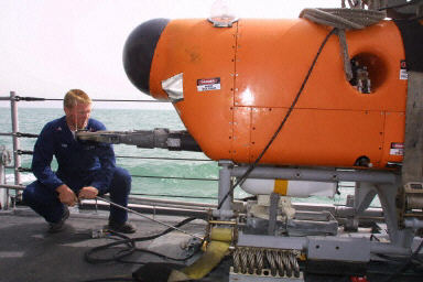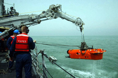 30日,美軍艦“掠奪”號使用水雷壓制裝置在伊拉克南部烏姆蓋斯爾水域執(zhí)行掃雷任務。