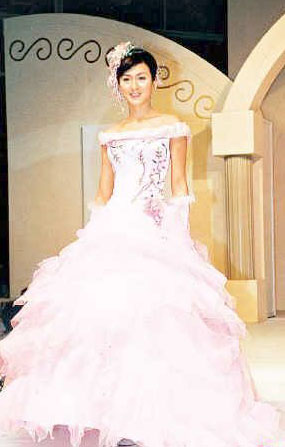 中新網3月31日電 “香港婚紗、婚宴暨蜜月旅游博覽2003”昨日舉行,周汶锜(Kathy)、姚嘉妮、歐陽妙芝及Rosemary等,為不同單位展示艷麗的新款婚紗及晚裝。Kathy在活動中更澄清與男友杜德偉的感情沒有出現問題,并非在人前扮恩愛。