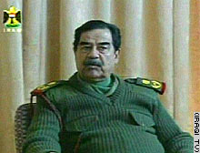 伊拉克電視臺星期四播放薩達(dá)姆畫面的同時,主持人在宣讀一份聲稱是來自這位伊拉克領(lǐng)導(dǎo)人的聲明。
