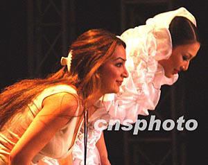 俄羅斯美女學生克萊姆亞科娃·歐伽,在北京國際青年時裝設計大賽上展示她的得意之作《變化的風》,自由的思緒使時裝風一樣的飛翔。作者:賈國榮