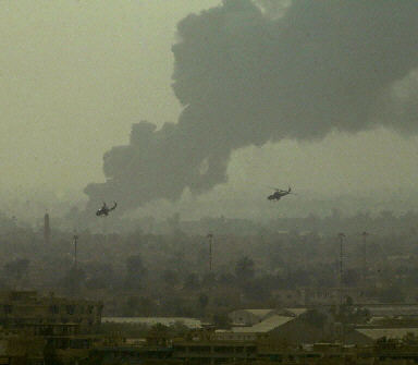 圖:美國阿帕奇武裝直升機首次在巴格達上空出現