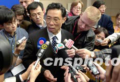 中國國務院新聞辦十日在北京舉行非典型肺炎新聞發布會,衛生部副部長馬曉偉在發布會結束后被記者們追訪。作者:張煒