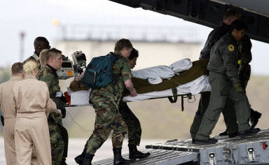 12日,美軍19歲女兵杰西卡·林奇經過駐德國美軍基地醫院的治療,今天乘美軍機從德國美軍基地返回美國。